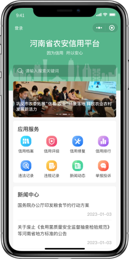 為貫徹落實《國務院辦公廳關于加快推進社會信用體系建設構建以信用為基礎的新型監管機制的指導意見》,深入推動“放管服”改革,發揮信用在創新監管機制、提高監管能力和水平方面的基礎性作用,全國農產品質量安全信用服務平臺構建起“立信、評信、示信、用信”的完整功能鏈條。 推出信用工具應用市場,提升信用信息采集能力和智能化監管水平,將產品溯源和公眾監督集成一體,為農產品質量安全提供監督、評價、信用服務,重在打造農產品的“大眾點評網”。同時,通過社會資源整合協同,為農業企業提供包括供應鏈、電子商務、檢測認證、金融保險等在內的全方位的產業化服務。